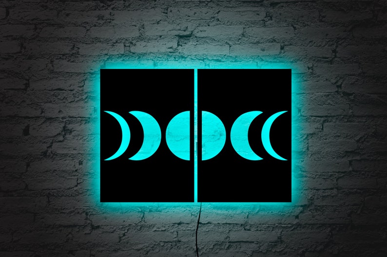This Moon Phase LED Wall Art is a unique and stylish way to add some lunar magic to your home. The artwork is made of wood and appears to be floating off the wall for a very cool effect. It features multiple lighting modes that allow you to fade, jump, and flash colors.
